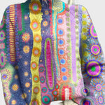 Kootud kõrge kaelusega kampsun päikesemustriga