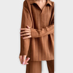 Elegantne komplekt, mis sobib iga stiiliga, andes igale välimusele peene ja ajatu hõngu. Selle mitmekülgne disain sobib suurepäraselt igaks sündmuseks, alates vabaajast kuni pidulikumani. Pehme tekstuur pakub mugavust, samas kui lai lõige sobib ideaalselt igapäevaseks kasutamiseks, kaotamata see oma minimalistlikku esteetikat.