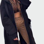 Pika lõikega kapuutsiga mantel, mis ühendab endas elegantsi ja praktilisust. Mugav lõige sobib suurepäraselt igapäevaseks kandmiseks, samas kui ajatu disain lisab igale välimusele stiili. Ese, mis pakub jahedatel päevadel soojust ja elegantsi.