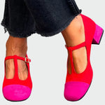 Need punased kontsakingad roosade detailidega ees paistavad silma oma julge ja moodsa disaini poolest. T-särk-Kangirihm pakub oma stiili, samas kui kandiline kontsert tagab mugavuse igal sammul. Paar, mis sobib isegi kõige lihtsama komplektiga.