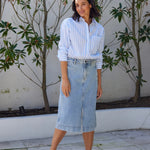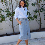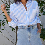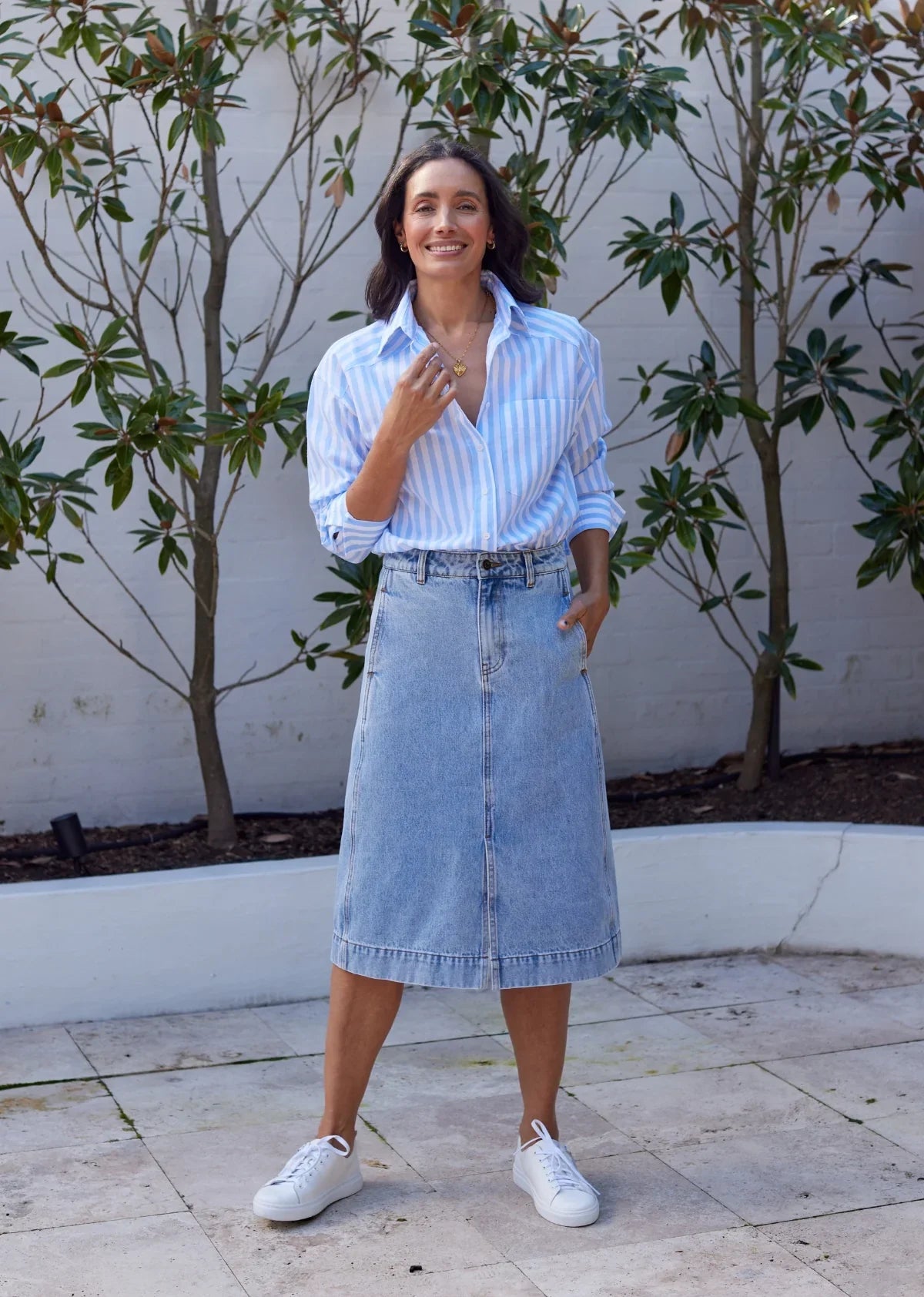 Polyvalente, la chemise Bertie Stripe est un véritable essentiel de garde-robe. Que vous alliez au bureau, retrouviez des amis ou profitiez d’une journée à la plage, elle rehausse instantanément votre tenue. Elle est aussi idéale comme protection solaire, portée ouverte sur un maillot de bain.