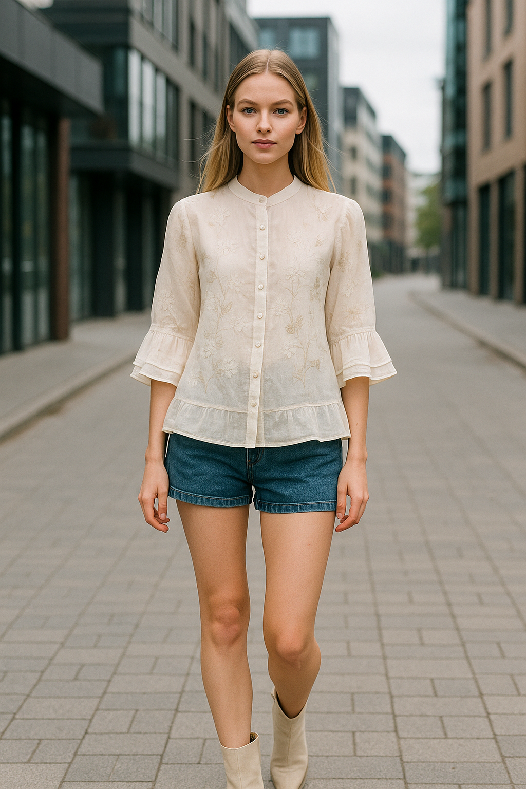 Avasta pluus, mis ühendab endas õrnuse, mugavuse ja hoolikalt viimistletud detailid. Kerge ja voogav lõige toob esile naiselikkuse, samal ajal kui peen lilleline tikand lisab romantilist ja ajatult šikki ilmet. Pehmete viimistlustega varrukad loovad kauni liikumise ning avaram lõige tagab mugavuse kogu päevaks. Ideaalne sobitamiseks pükste, seeliku või lühikeste pükstega – see pluus kohandub kergesti nii argisteks kui ka pidulikemaks hetkedeks. Mitmekülgne, naiselik ja isikupärane rõivaese.