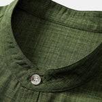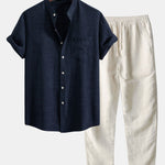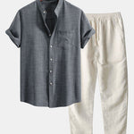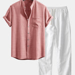 Chemise à manches courtes avec col chinois et pantalons en lin à pattes droites